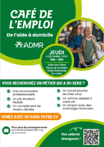 Dans le cadre de ses actions de recrutement et de valorisation des métiers de l’aide à domicile, l’ADMR organise un café de l’emploi.