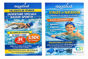 Pendant les petites vacances scolaires de février, le centre aquatique AQUASUD vous propose une ouverture exceptionnelle du bassin sportif :