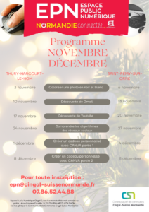 Le nouveau programme des ateliers numériques de l’EPN Cingal-Suisse Normande est disponible.