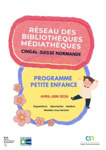 Le réseau des bibliothèques de Cingal-Suisse Normande vous présente sa programmation petite enfance pour les mois d’avril à juin