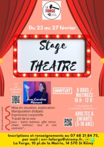 Nouveau : du lundi 23 au vendredi 27 février, la Forge vous propose un stage de théâtre de 10h à 12h